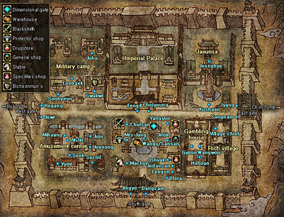 Vedd fel a küldit Janganba SONHEYON tábornoktól ( 6206,1177) 1. lépés:Beszélj a protector merchant MRS JANG-al (6371,1067) és térj vissza a Tábornokhoz 2. lépés:Beszélj a general shop tulajdonosával JINJIN-el (6498,1067),equip the ring she gives you és térj vissza a Tábornokhoz 3. lépés:Beszélj a herbalistával YANGYUN-al (6491,1100),és vegyél egy HP recovery herb-et és térj vissza a Tábornokhoz 4. lépés:Ölj 30 Mangyangs és térj vissza a Tábornokhoz |